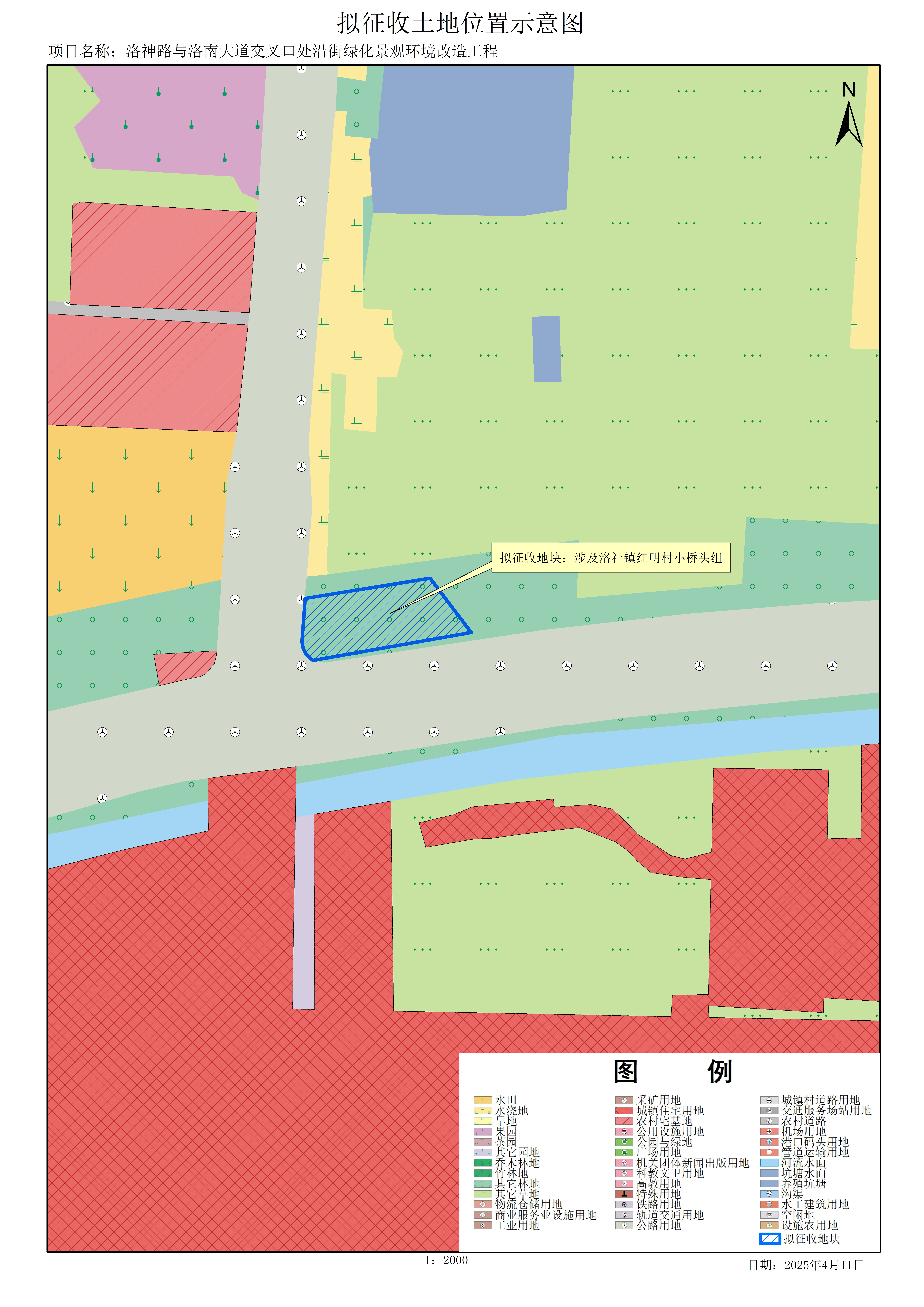 由政府組織實(shí)施的科技、教育、文化、衛(wèi)生、體育、生態(tài)環(huán)境和資源保護(hù)、防災(zāi)減災(zāi)、文物保護(hù)、社會(huì)綜合服務(wù)、社會(huì)福利、市政公用、優(yōu)撫安置、英烈保護(hù)等公共事業(yè)需要用地,項(xiàng)目名稱為洛神路與洛南大道交叉口處沿街綠化景觀環(huán)境改造工程。