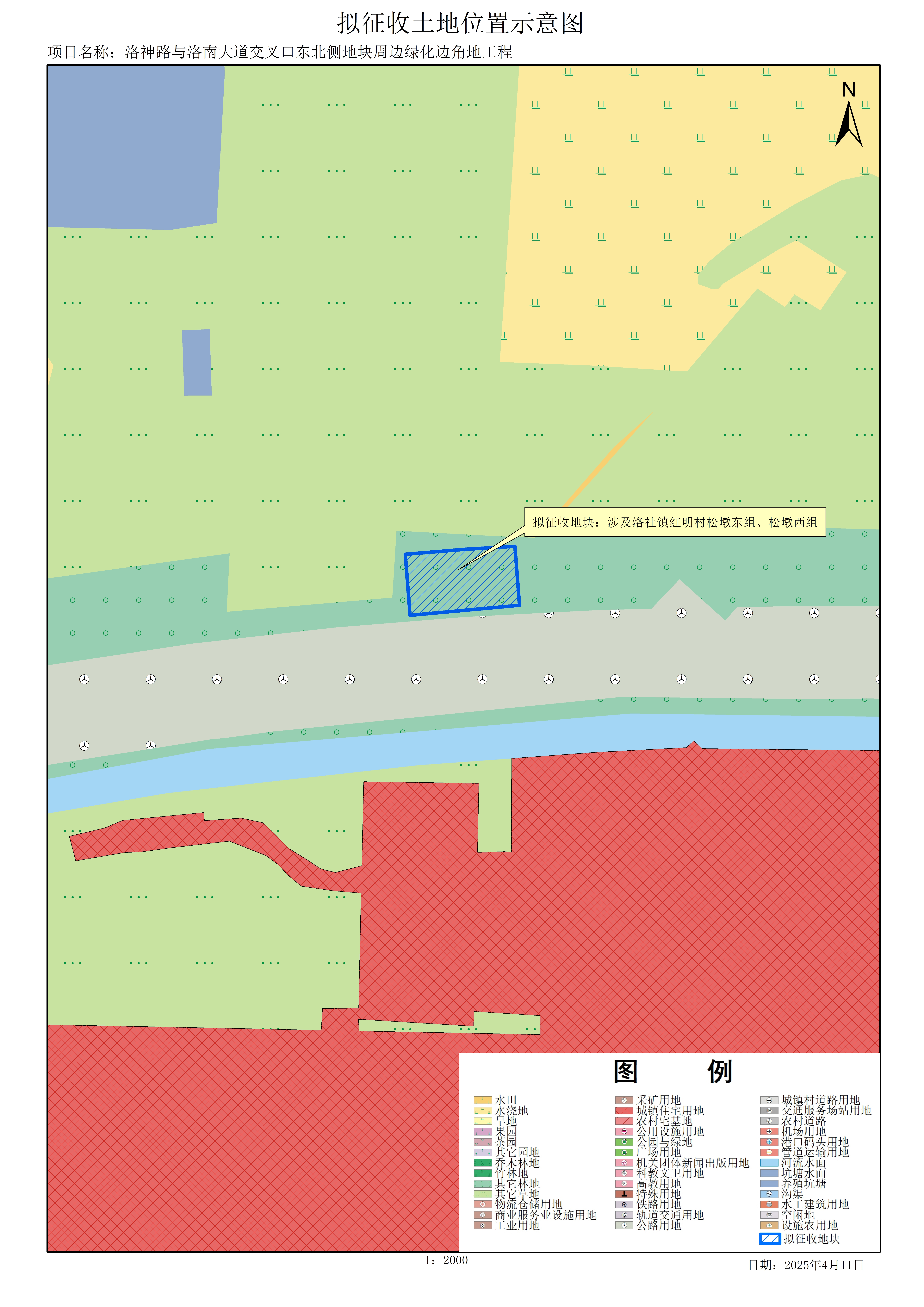 由政府組織實(shí)施的科技、教育、文化、衛(wèi)生、體育、生態(tài)環(huán)境和資源保護(hù)、防災(zāi)減災(zāi)、文物保護(hù)、社會綜合服務(wù)、社會福利、市政公用、優(yōu)撫安置、英烈保護(hù)等公共事業(yè)需要用地,項(xiàng)目名稱為洛神路與洛南大道交叉口東北側(cè)地塊周邊綠化邊角地工程。