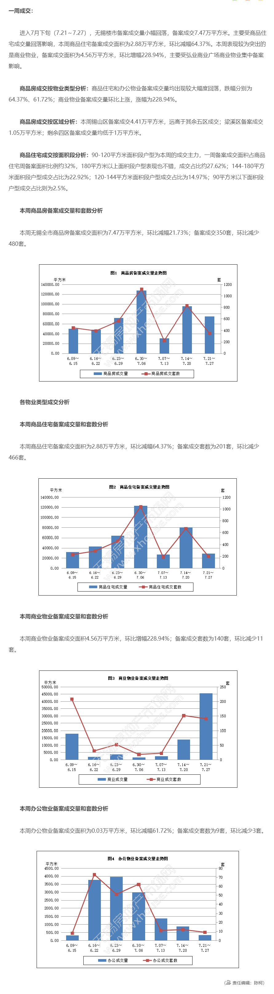 7.21~7.27無錫商品房一周備案成交7.47萬平方米 |