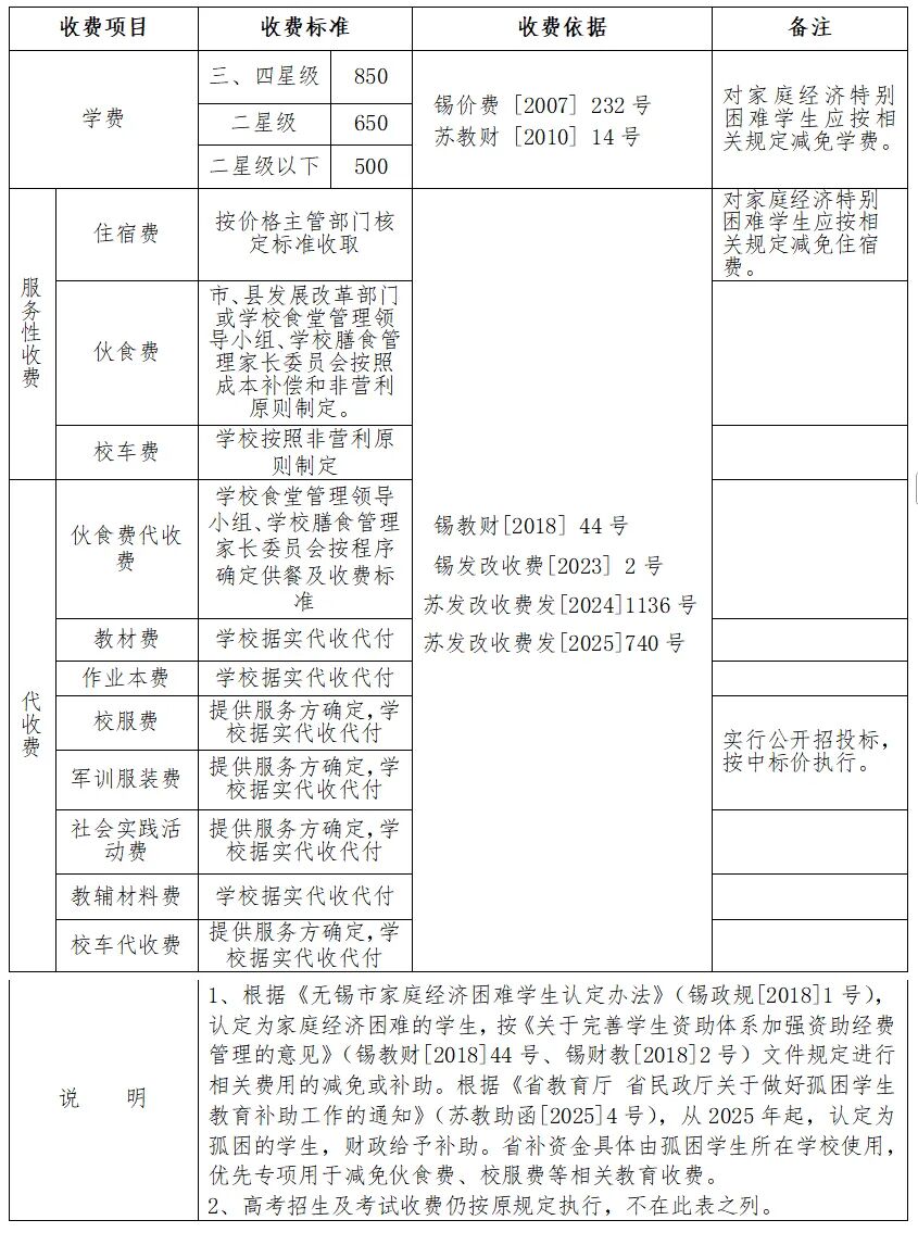 無錫市區(qū)公辦普通高中收費(fèi)表