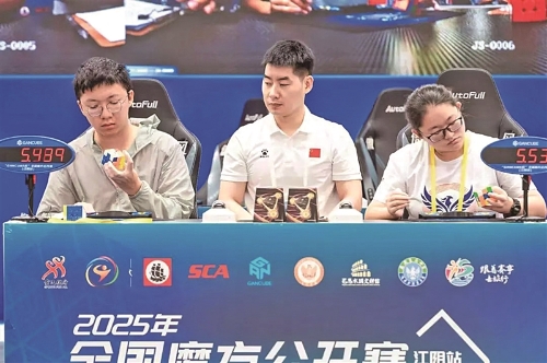 近日,2025年全國魔方公開賽(江陰站)暨第九屆818魔方大賽落幕,來自江蘇省天一中學(xué)的3位選手喜獲佳績,蔣雯娜獲三階速擰特等獎、三階單手(U18女子組)第一名、三階速擰(U18女子組)第二名;姜漢獲三階速擰特等獎、三階單手(U18男子組)第五名;劉旭宸同學(xué)獲三階速擰一等獎。