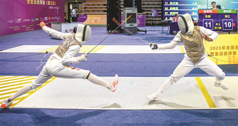 昨日(9月6日)下午,惠山區(qū)全民健身中心內,劍尖輕點、步伐迅捷,2025年全國擊劍錦標賽暨全運會預賽第三站正式拉開戰(zhàn)幕(如圖)。來自全國49個代表單位的648名運動員、教練員及工作人員匯聚于此,展開為期六天的激烈角逐。
