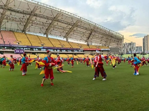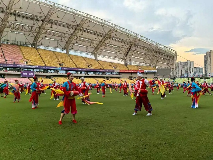 為了把這項國家級非遺的最高演出水平呈現(xiàn)在“蘇超”無錫賽場,延安文化發(fā)展集團(tuán)組成了一支實力強(qiáng)勁的安塞腰鼓演出陣容。“這支隊伍中,延安歌舞劇團(tuán)的演員為主力軍,同時抽調(diào)了延安民族管弦樂團(tuán)、延安市寶塔區(qū)民眾劇團(tuán)、安塞民間藝術(shù)培訓(xùn)中心、延川山花文化演藝集團(tuán)等多家演出團(tuán)隊人員聯(lián)袂演出。”延安文化發(fā)展集團(tuán)副總經(jīng)理郭延偉介紹。