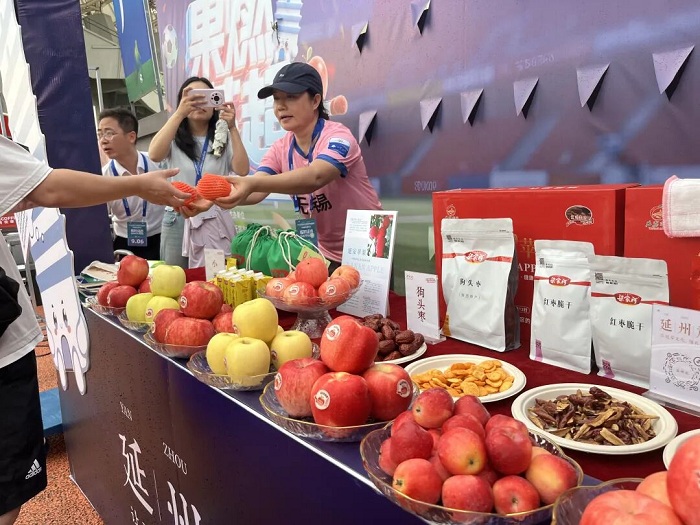 延安紅棗果形飽滿如珠、延安小米圓潤金黃……市集現(xiàn)場,包括延安蘋果在內(nèi)的延安三大標(biāo)志性農(nóng)特產(chǎn)品一一亮相。“還有一些蘋果的衍生品,像蘋果片、蘋果醋等等,以果為媒,讓幫扶情誼在‘蘇超’的熱血氛圍中持續(xù)升溫。”馮瑾告訴記者,不僅如此,他們還把延安蘋果作為城市伴手禮贈送給了此次參賽的“蘇超”隊員。