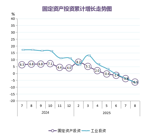 內(nèi)容概述 | 2025年1-8月固定資產(chǎn)投資下降6.3% |