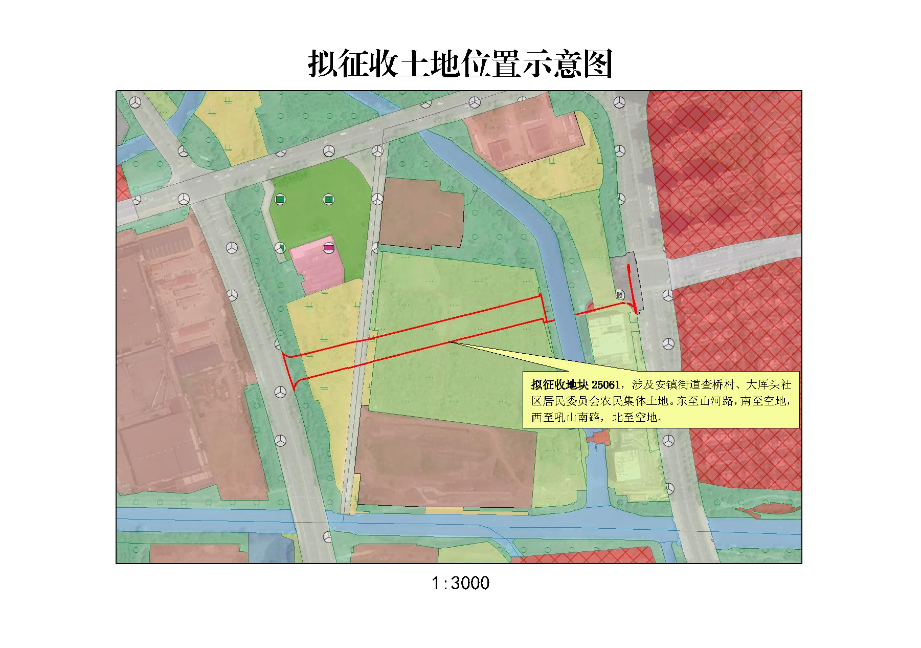 本次擬征收土地位于安鎮(zhèn)街道查橋村、大厙頭社區(qū)居民委員會農民集體范圍內。擬征收土地位置詳見附圖。