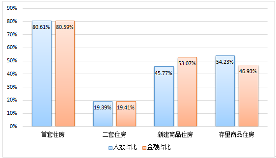從貸款群體來(lái)看,剛需與改善型住房需求職工分別占貸款總?cè)藬?shù)的19.39%和71.88%。從單位性質(zhì)來(lái)看,以城鎮(zhèn)私營(yíng)企業(yè)及其他城鎮(zhèn)企業(yè)職工為主,貸款筆數(shù)和貸款金額占比分別為57.69%、55.66%。從購(gòu)房面積來(lái)看,職工貸款購(gòu)買(mǎi)90(不含)-120㎡房屋居多,占貸款總?cè)藬?shù)的43.89%。從主借人繳存基數(shù)來(lái)看,貸款主要以中、低收入職工為主,分別占貸款總?cè)藬?shù)的27.48%、71.69%。從貸款類(lèi)型來(lái)看,純公積金貸款和組合貸款占比分別為86.35%、13.65%。從貸款結(jié)構(gòu)來(lái)看,首套住房公積金貸款職工占貸款總?cè)藬?shù)的80.61%,二套住房公積金貸款人數(shù)占19.39%。具體放貸結(jié)構(gòu)如下: