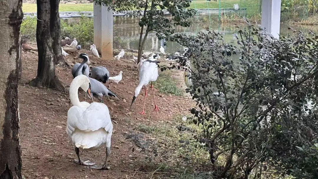 與孔雀、蓑羽鶴、疣鼻天鵝等伙伴為鄰。