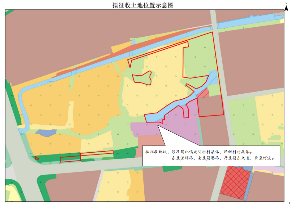 本次擬征收土地位于錫北鎮(zhèn)光明村村集體、涇新村村集體范圍內(nèi)。擬征收土地位置詳見附圖。
