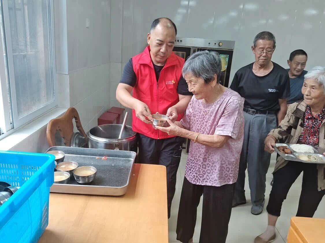 8年前,善卷村日間照料中心老年食堂投入使用,葉秋松又多了一項新工作——他每月至少兩次到食堂當(dāng)義工,為食堂洗菜拖地、維護秩序,為就餐老人打飯舀湯、洗碗洗筷等。在葉秋松的感召和善卷村黨總支的推動下,目前,善卷村志愿服務(wù)隊已發(fā)展成為一支擁有40多名村民和黨員的隊伍,經(jīng)常開展老年人日間照料、愛心“大廚房”、守護美麗家園、文明旅游宣傳、黨員便民利民、“愛心小天使”和文明護蕾等志愿服務(wù)活動。一抹抹志愿紅,已成為善卷村溫暖而美麗的風(fēng)景。